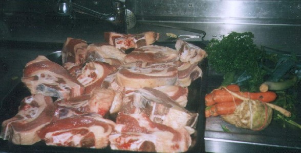 Frisches Fleisch und frisches Gemüse für die Suppe.